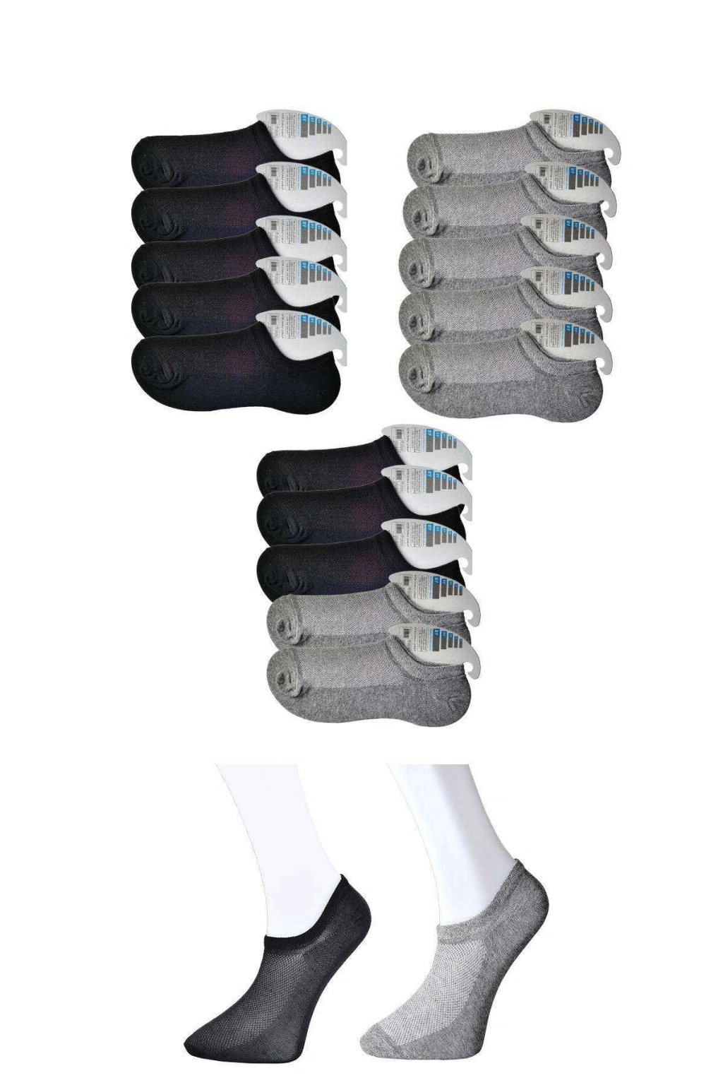 • Siyah ve Gri Erkek Görünmez Çorap 15 çift