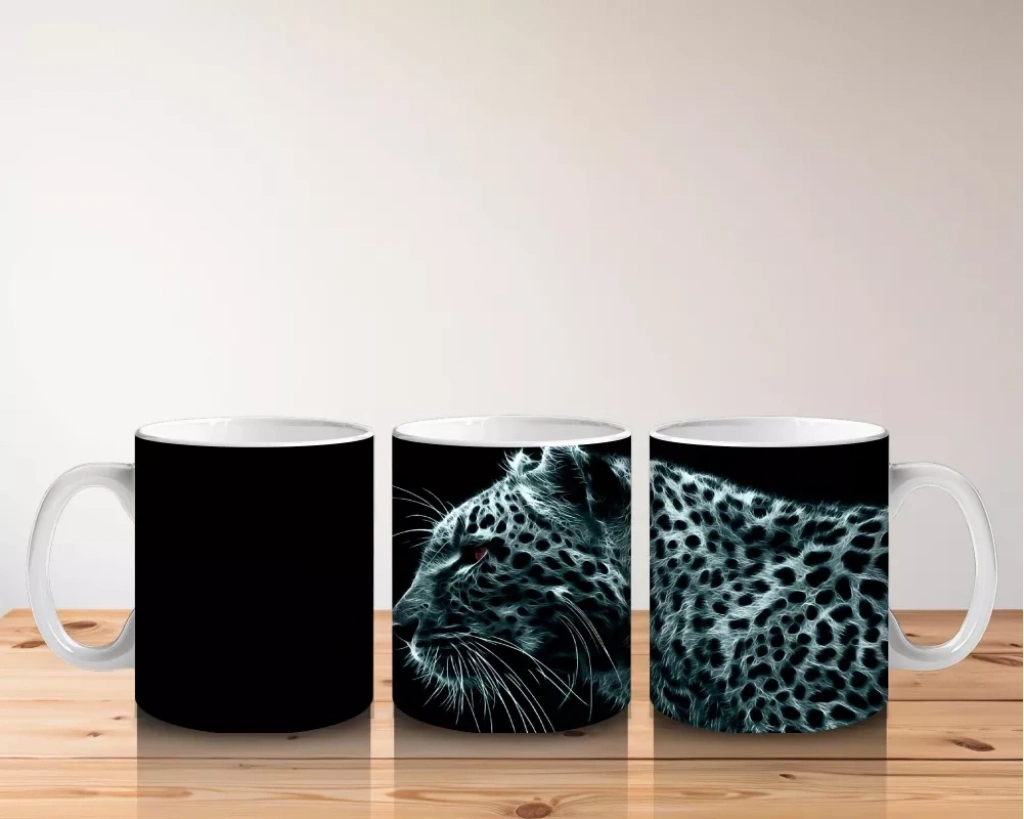 Siyah zemin üzerine işlenen etkileyici bakışlara sahip bu leopar portresi, zarafet ve vahşi doğayı bir araya getiriyor. Şıklığı ve gizemi sevenlere özel, dikkat çekici bir kupa tasarımı.