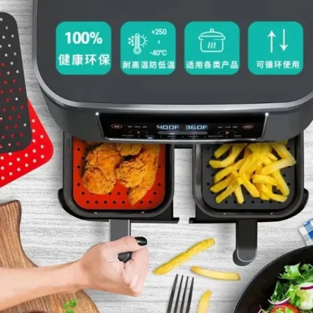 SLİKON PİŞİRME KAĞIDIÜrün Özellikleri Gıdaların yapışmasını önler.Gıda etrafında maksimum hava akışı sağlar, delikli bir tasarıma sahiptir.BPA içermeyezAir fryer kızartma, buharlama ve fırın ısısına dayanabilir. Pişirme işleminden sonra bulaşık makinesine koyabilirsiniz. Basit ve kolay temizlenebilir.Kullanım alanları : Tencere, Tava, AirFryer, Mikrodalga, FırınMalzeme: silikonBoyut: 20.3*13.3*0.15cmAğırlık: 50gPaket İçeriği1 adet silikon fırın kağıdı