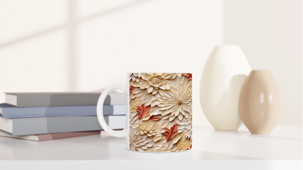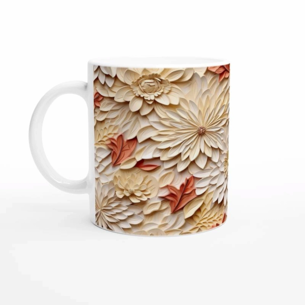 Sonbahar Dokulu Çiçek Kolajlı Kupa Bardak