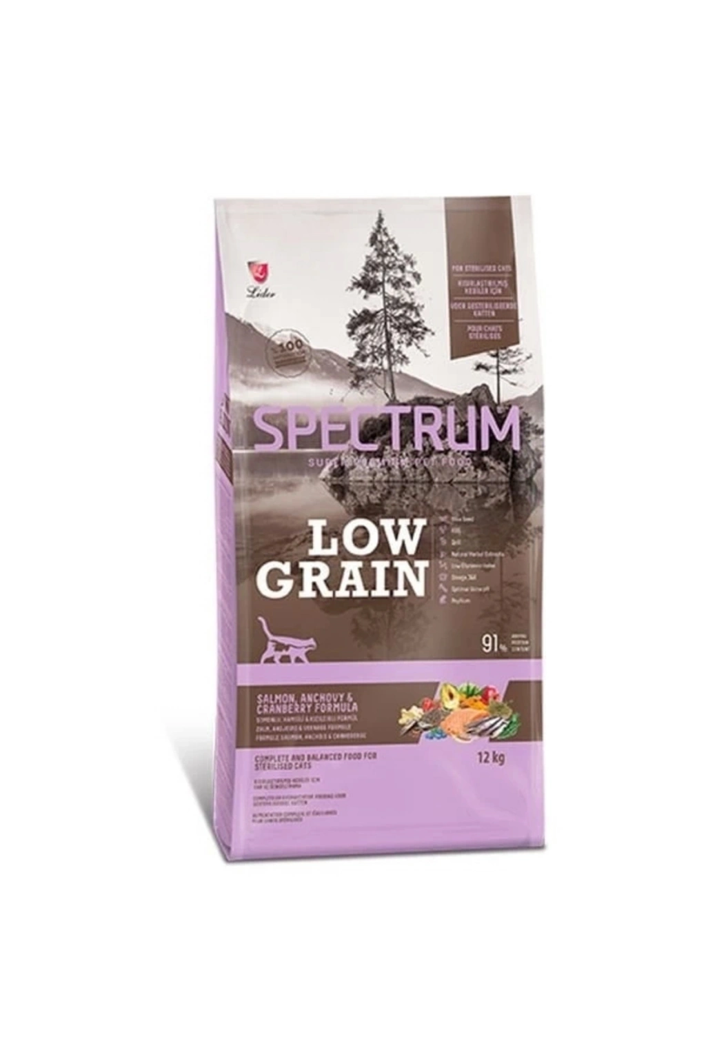 Spectrum Düşük Tahıllı Somonlu Hamsili ve Yaban Mersinli Kısırlaştırılmış Kedi Maması 12 Kg