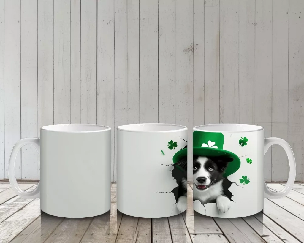 St. Patrick Şapkalı Siyah Beyaz Yavru Köpek – Baskılı Kahve Kupası