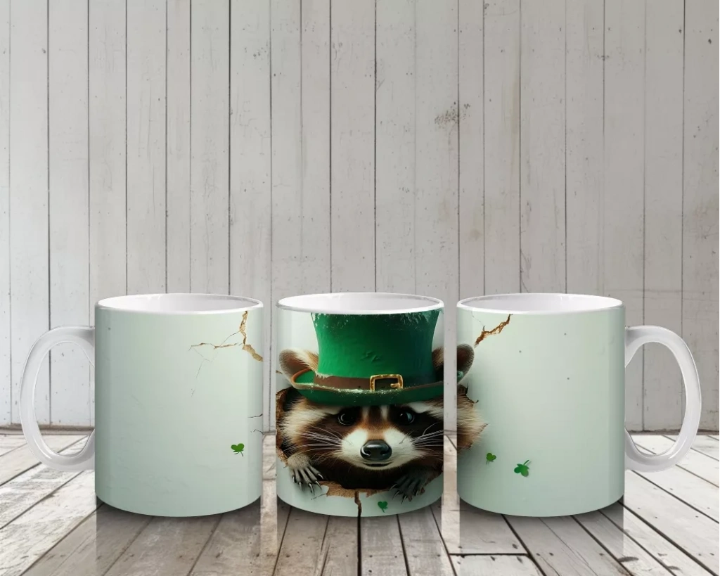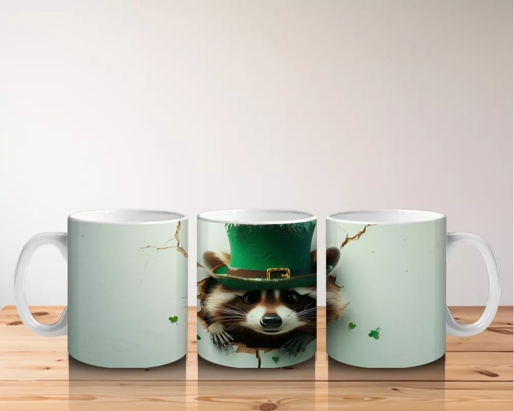 St. Patrick Şapkalı Tüylü Rakun – Baskılı Kahve Kupası