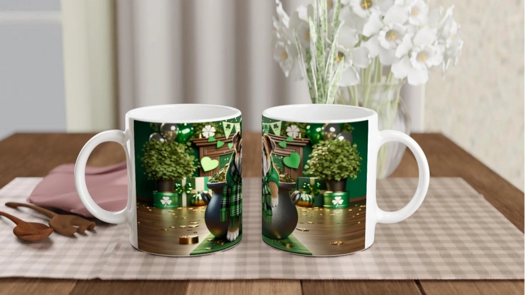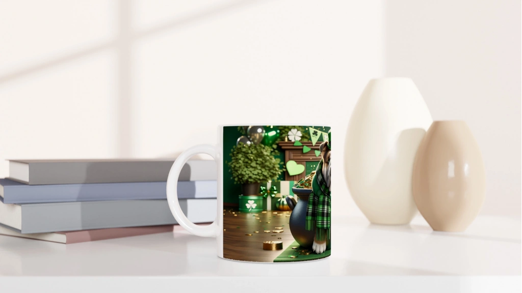 St. Patrick Şapkasıyla Şans Kazanında Bulldog Temalı Baskılı Kupa Bardak, dört yapraklı yonca süslemeleri, altın sikkeler ve geleneksel İrlanda havasıyla özel gün ruhunu yansıtır. Hem köpek severlere hem de St. Patrick’s Day coşkusunu yaşamak isteyenlere ideal.