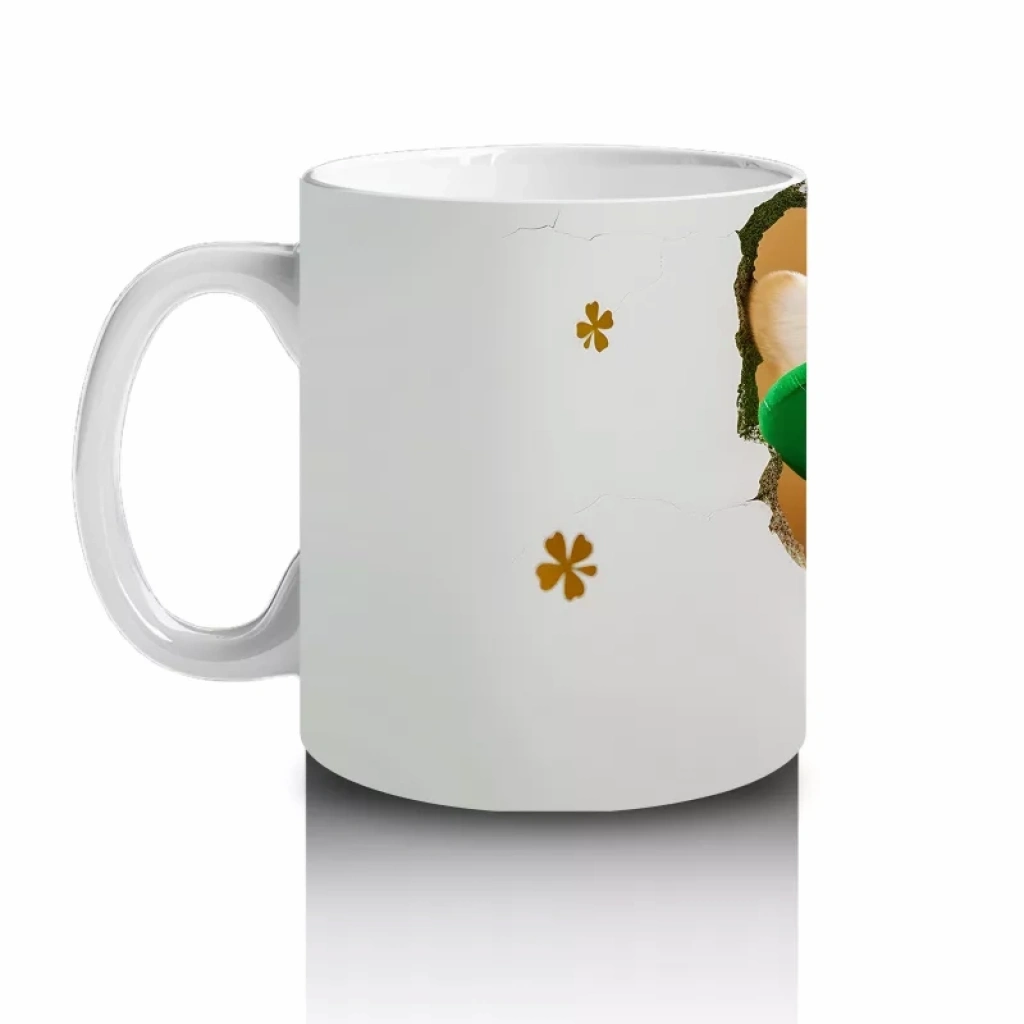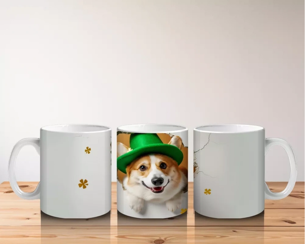 St. Patrick Şapkasıyla Sevimli Köpek Yavrusu – Baskılı Kahve Kupası