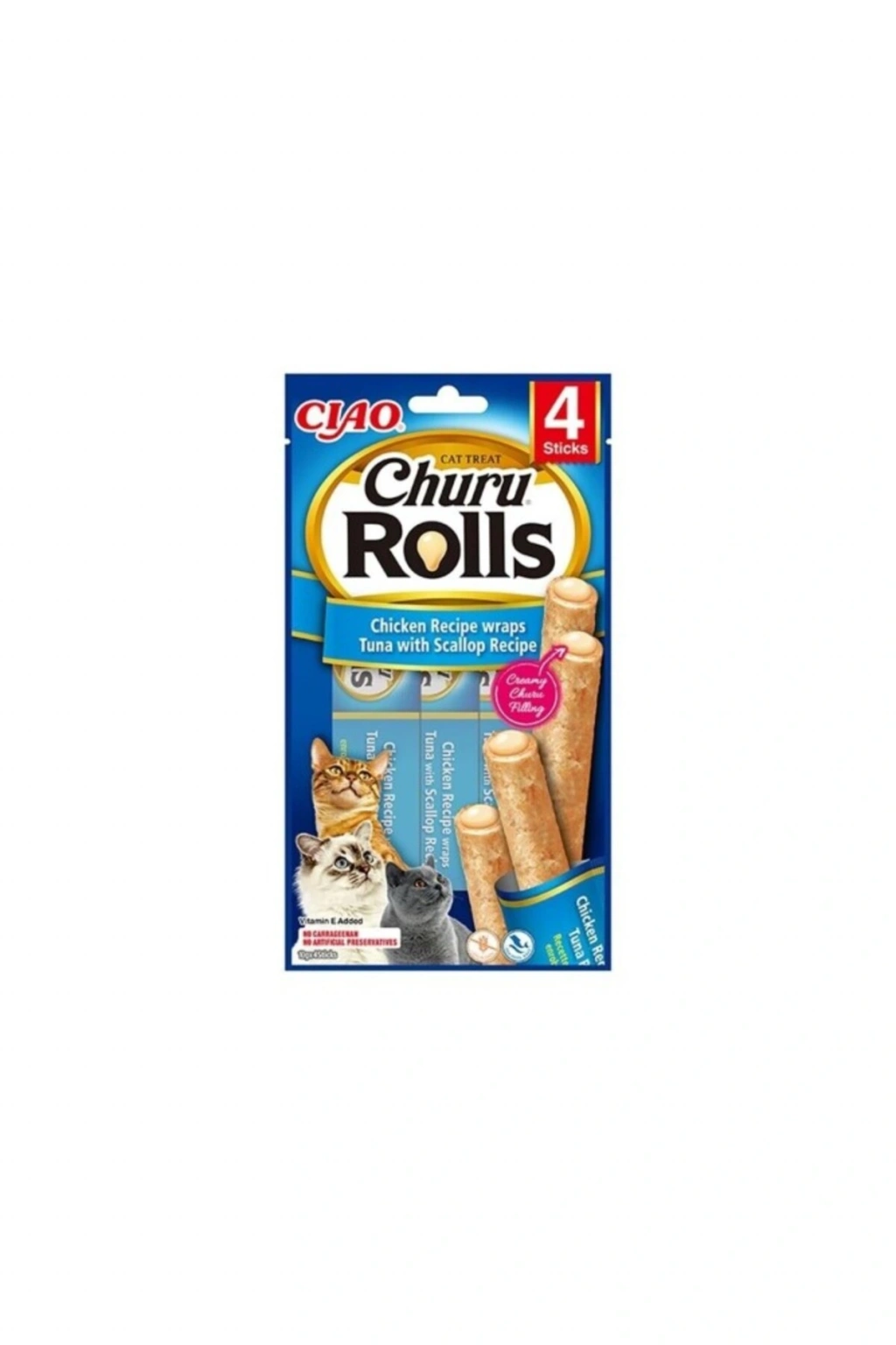 Inaba Ciao Churu Rolls Sticks Tavuk Sargılı Deniz Taraklı ve Ton Balıklı Kedi Ödül Maması 10 Gr 4 Adet
