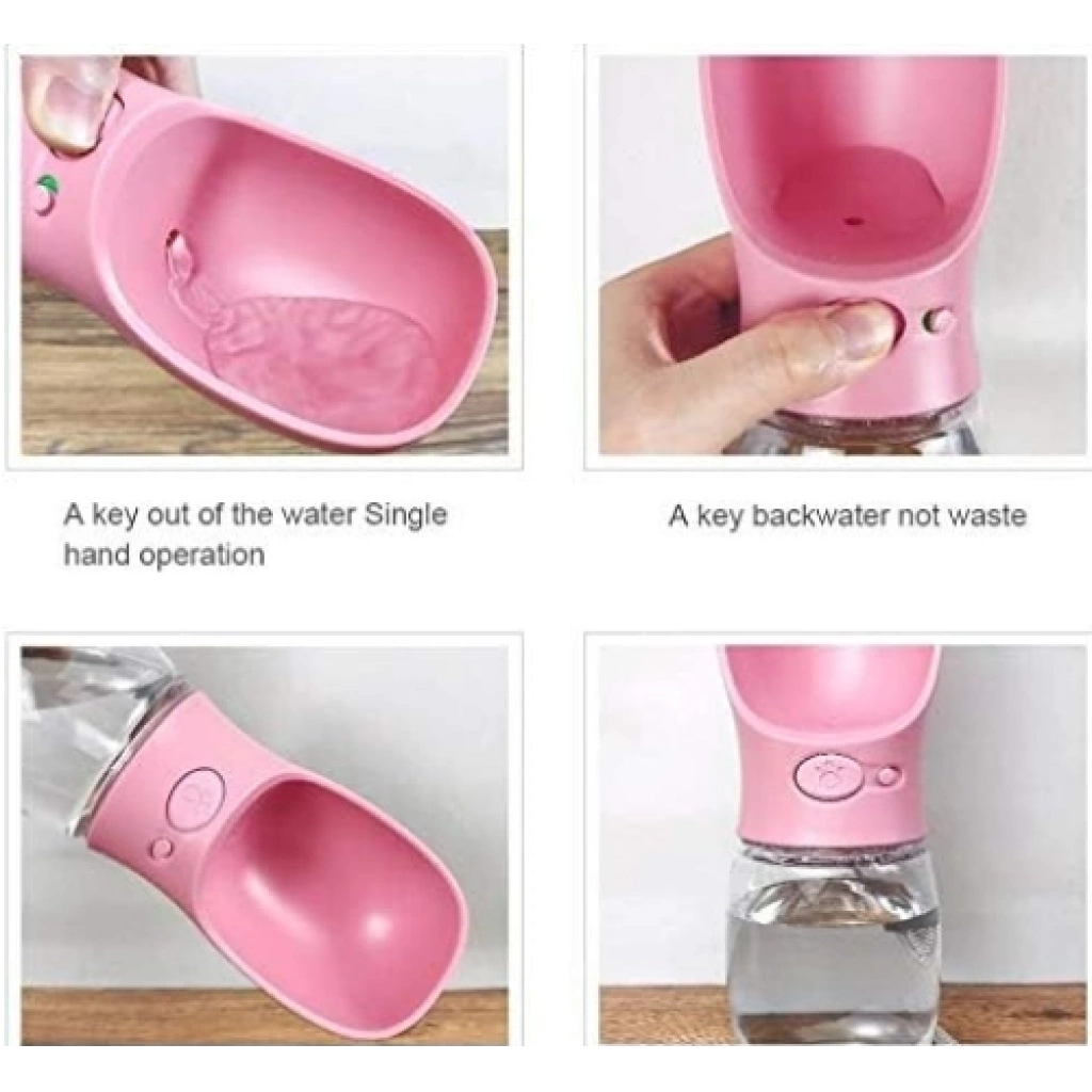 Taşınabilir Köpek Su MatarasıÜrün Açıklaması:Evcil hayvan sahipleri için özel olarak tasarlanmış bu taşınabilir su matarası, köpeğinizin her yerde kolayca su içebilmesini sağlar. Seyahat tipi su kabı ile yürüyüşlerde, seyahatlerde veya dışarıda vakit geçirirken köpeğinizi susuz bırakmayın. Tek tuşla su akışı sağlanır ve ergonomik yapısı sayesinde kullanımı oldukça pratiktir. Hafif, taşınabilir ve su sızdırmaz özelliği ile oldukça işlevsel bir üründür. Farklı renk seçenekleri ile sunulmaktadır.Malzeme: Yüksek kaliteli plastikKapasite: 350 mlRenk Seçenekleri: Turkuaz, Beyaz, PembeÖzellikler: Tek tuşla su akışı, sızdırmaz, kolay taşımaKullanım Alanı: Seyahat, yürüyüş, park gezintileri
