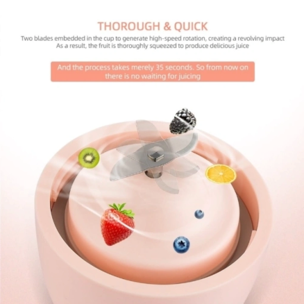 TAŞINABİLİR ŞARJ EDİLEBİLİR MEYVE SIKACAĞITaze Meyve Blenderi, El Mikseri, Kablosuz Meyve Suyu Sıkacağı.Kompakt gövdesi ile istediğiniz zaman sizinle birlikte.Yüksek hızlı döndürme özelliği ile maksimum 35 saniyede görevini tamamlar.BPA içermez sağlığa zararlı bir madde barındırmaz.Dahili 1500 mah lityum pil, tam olarak şarj edildiğinde 10 bardak meyve suyu üretebilir.Paket İçeriği1 adet taşınabilir şarj edilebiir meyve sıkacağı