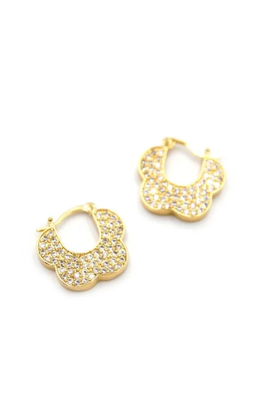 Taşlı Çiçek Küpe - Altın
