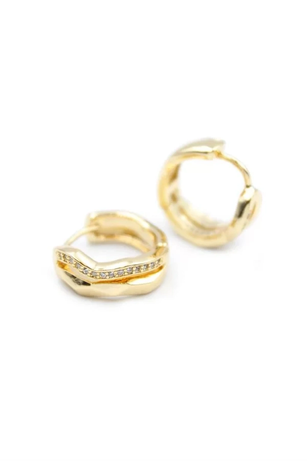 Taşlı Halka Küpe - Altın
