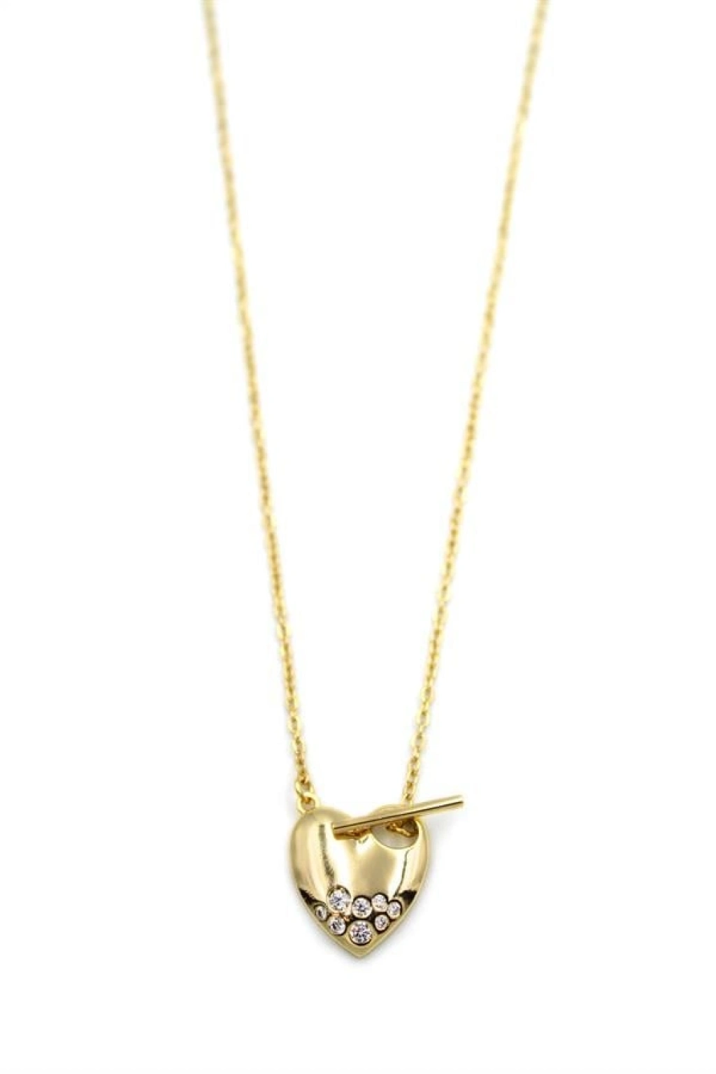 Taşlı Kalp Kolye - 14K Altın
