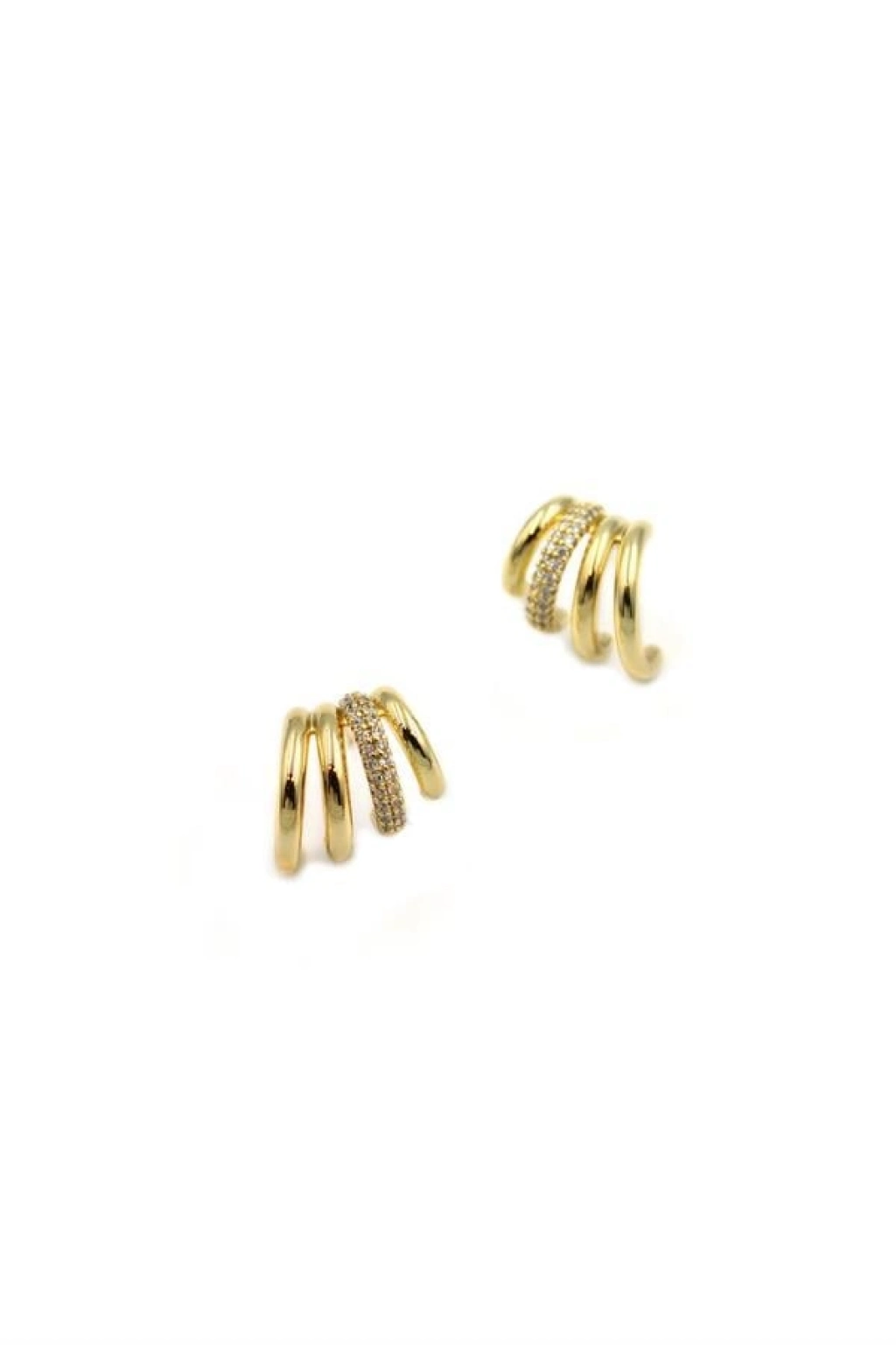 Taşlı Kıvrımlı Küpe - Altın