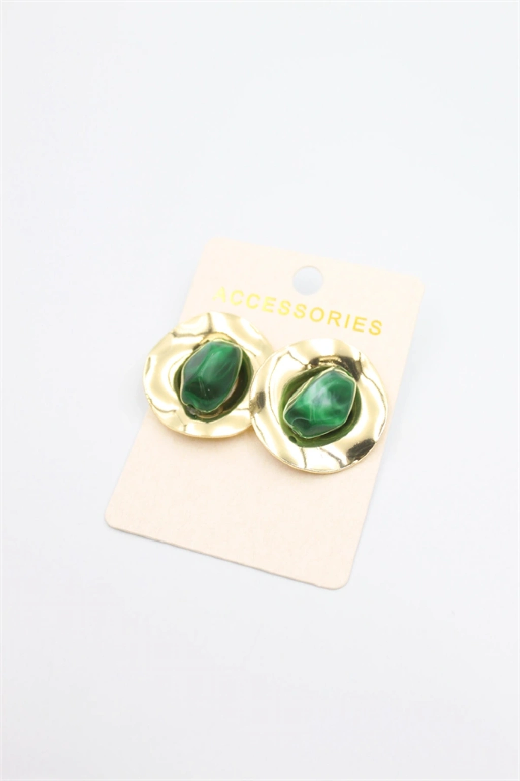 Taşlı Metal Küpe - Yeşil