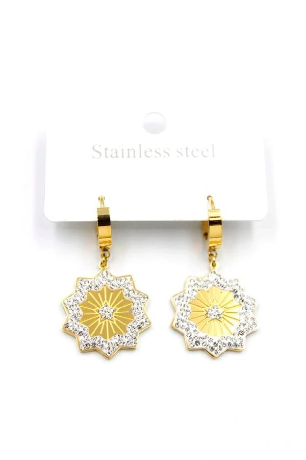 Taşlı Yıldız Çelik Halka Küpe - Altın