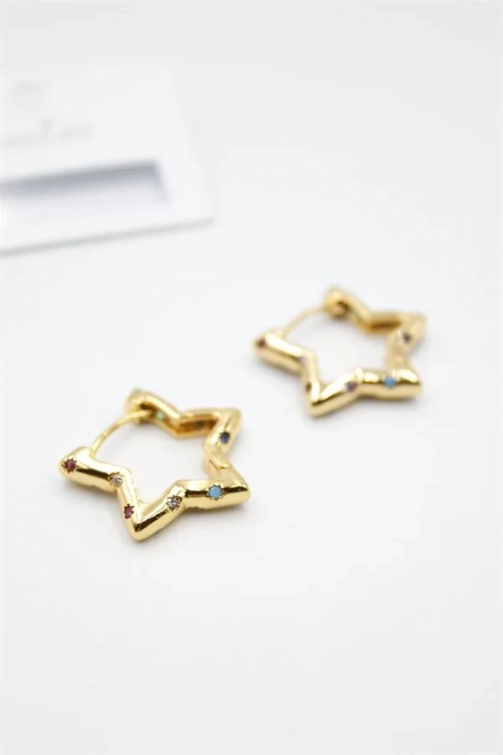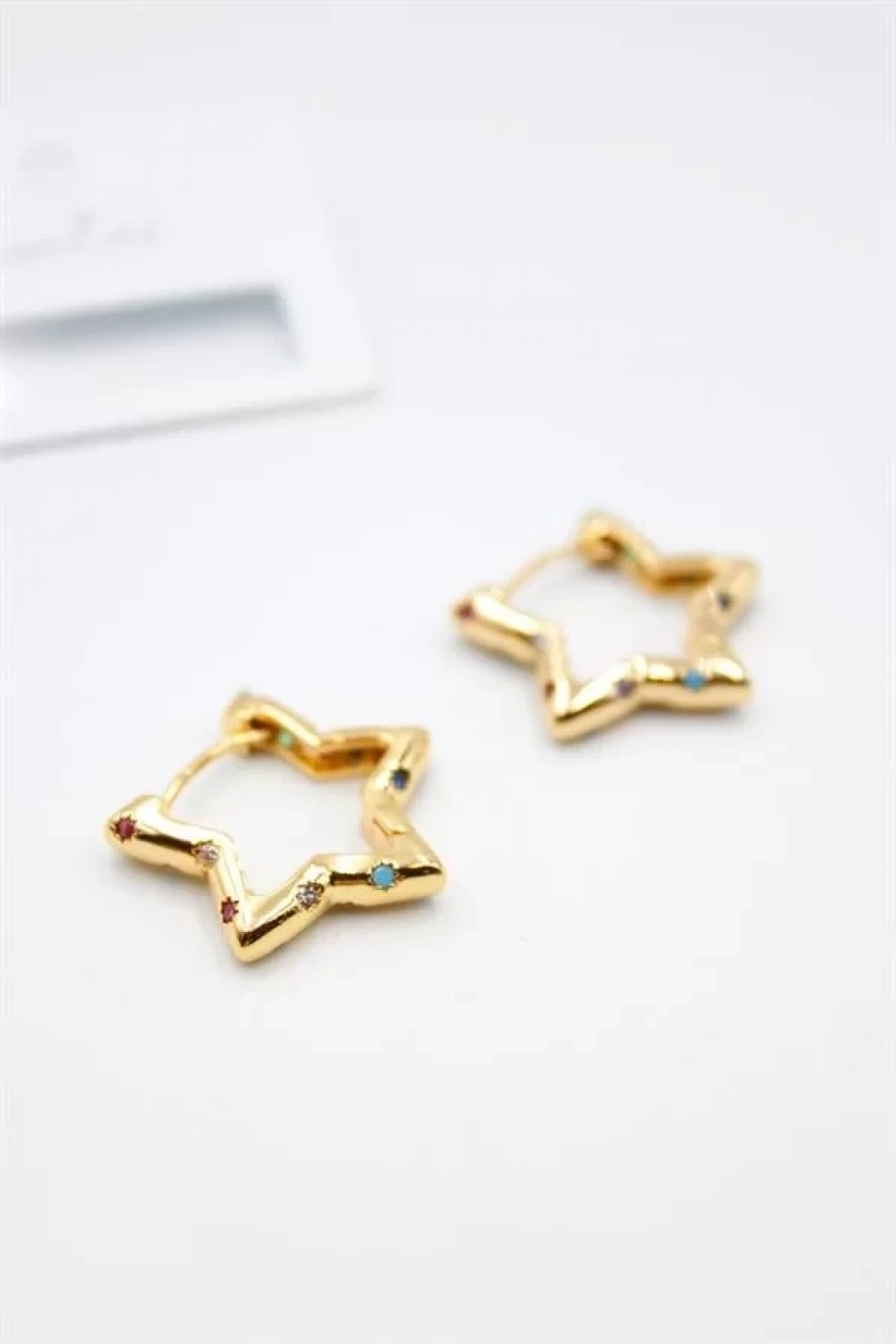 Taşlı Yıldız Küpe - Altın