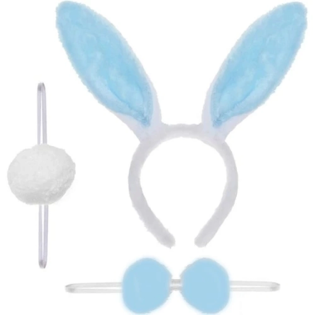 Tavşan Kostüm Seti Mavi Renk - Taç, Papyon, Ponpon, Kuyruk