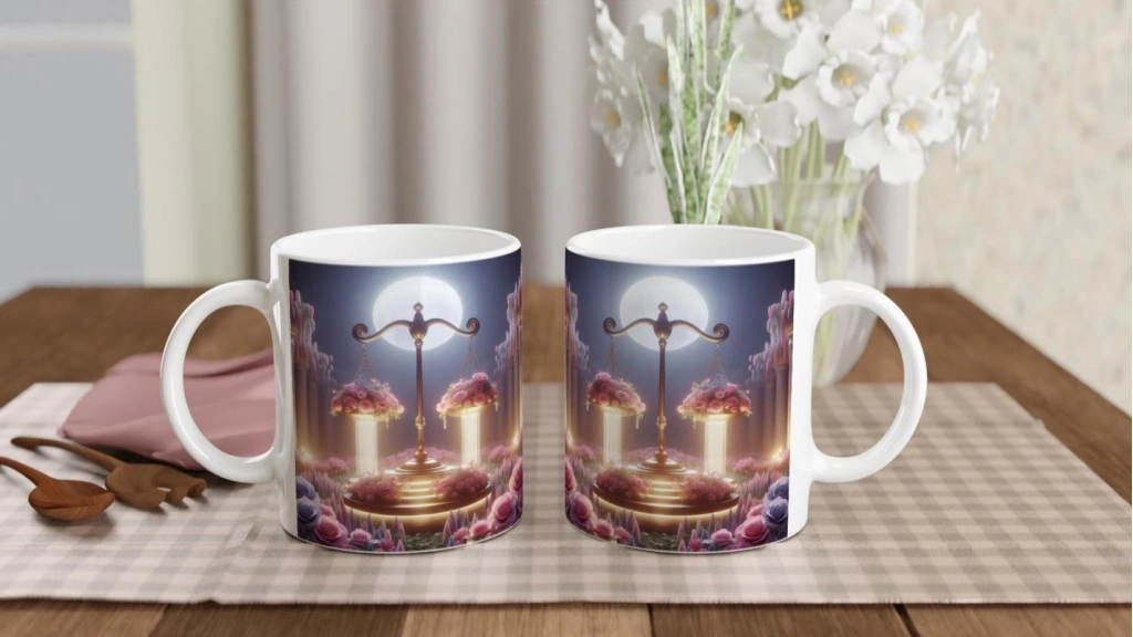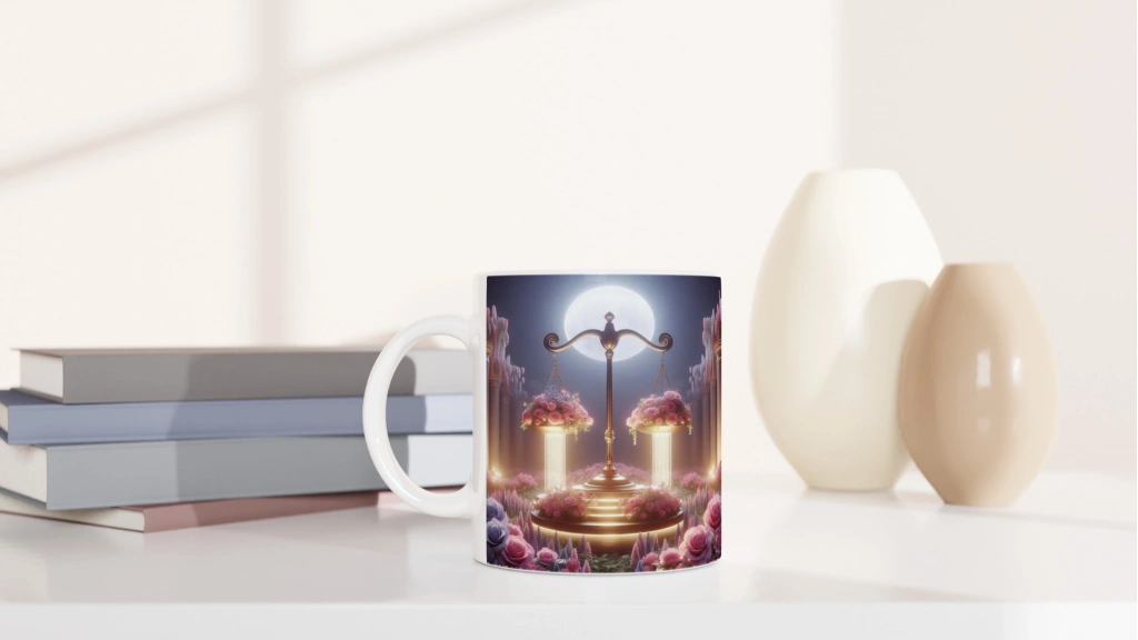 Adalet ve güzelliğin temsilcisi Terazi burcuna özel bu tasarım, yıldızlarla dolu bir gece bahçesinin uyumlu enerjisini yansıtır. Kahveniz artık daha şık!