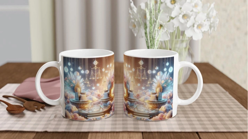 Terazi Burcu Baskılı Kahve Kupası - Elementsel Doğa Krallığı Temalı Vs4