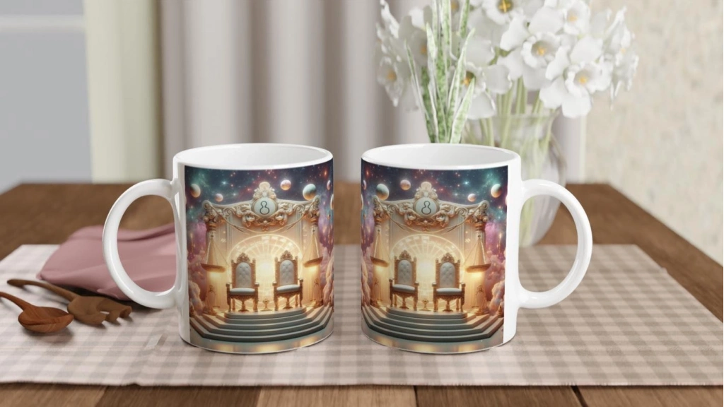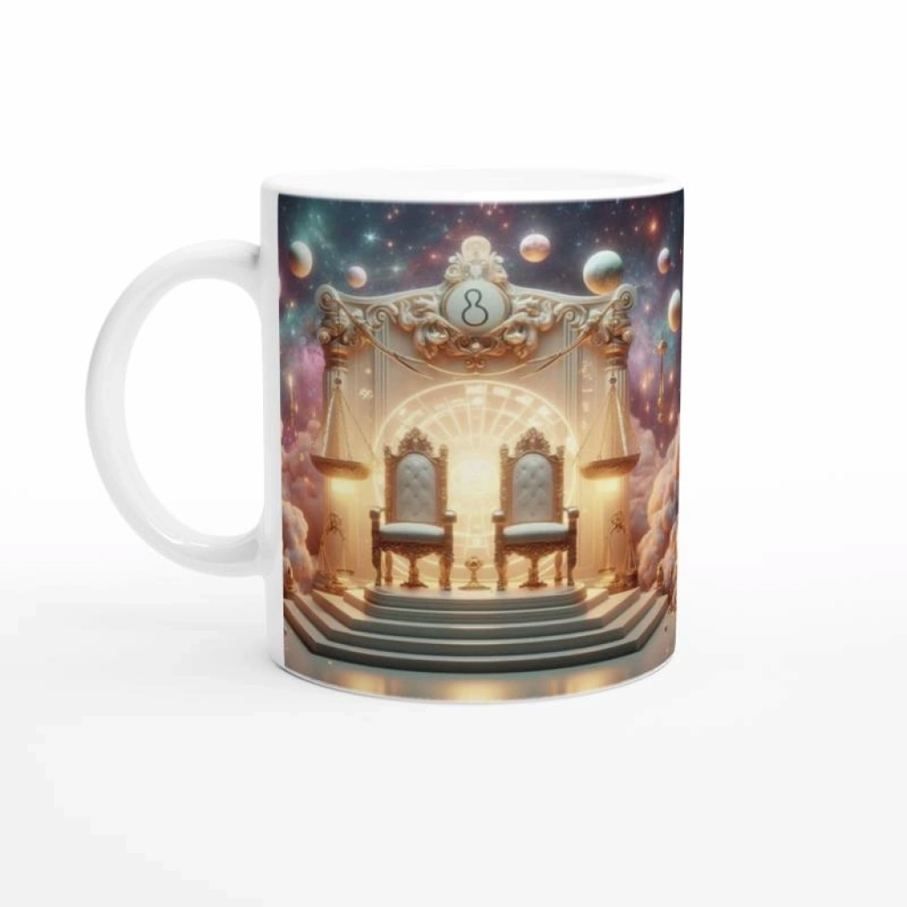 Göz alıcı bir denge: Terazi’nin içsel uyumu bu kozmik taht tasarımında hayat buluyor. Sanatsal ruhunuzu kahve molalarınıza taşıyın.