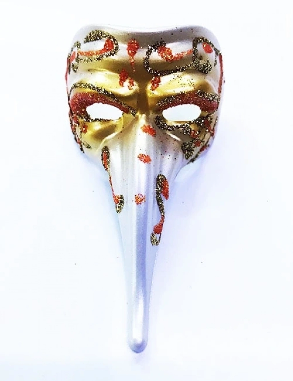 Turuncu Renk İşlemeli Seramik Malzemeden İmal Venedik Uzun Maske Magnet