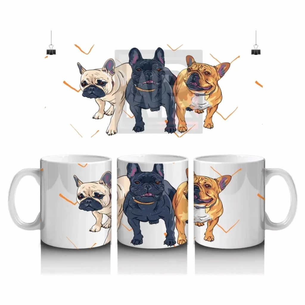 Üç Sevimli Bulldog Karakteri İllüstrasyonu – Baskılı Kahve Kupası