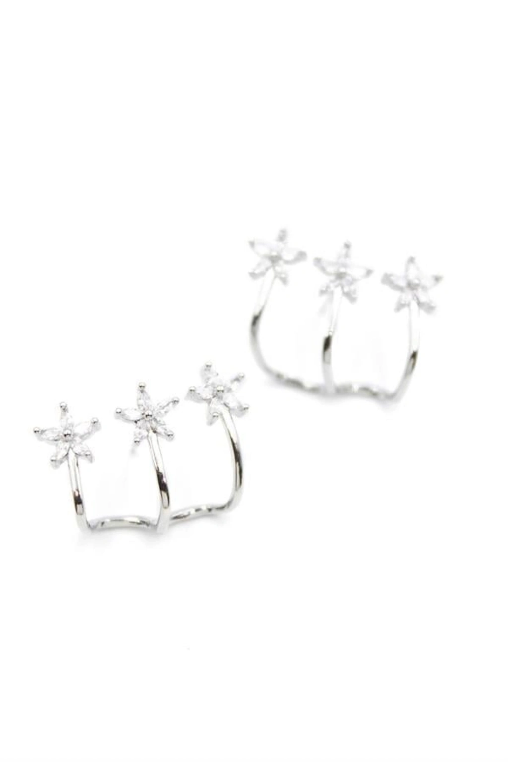 Üçlü Çiçek Küpe - Gümüş