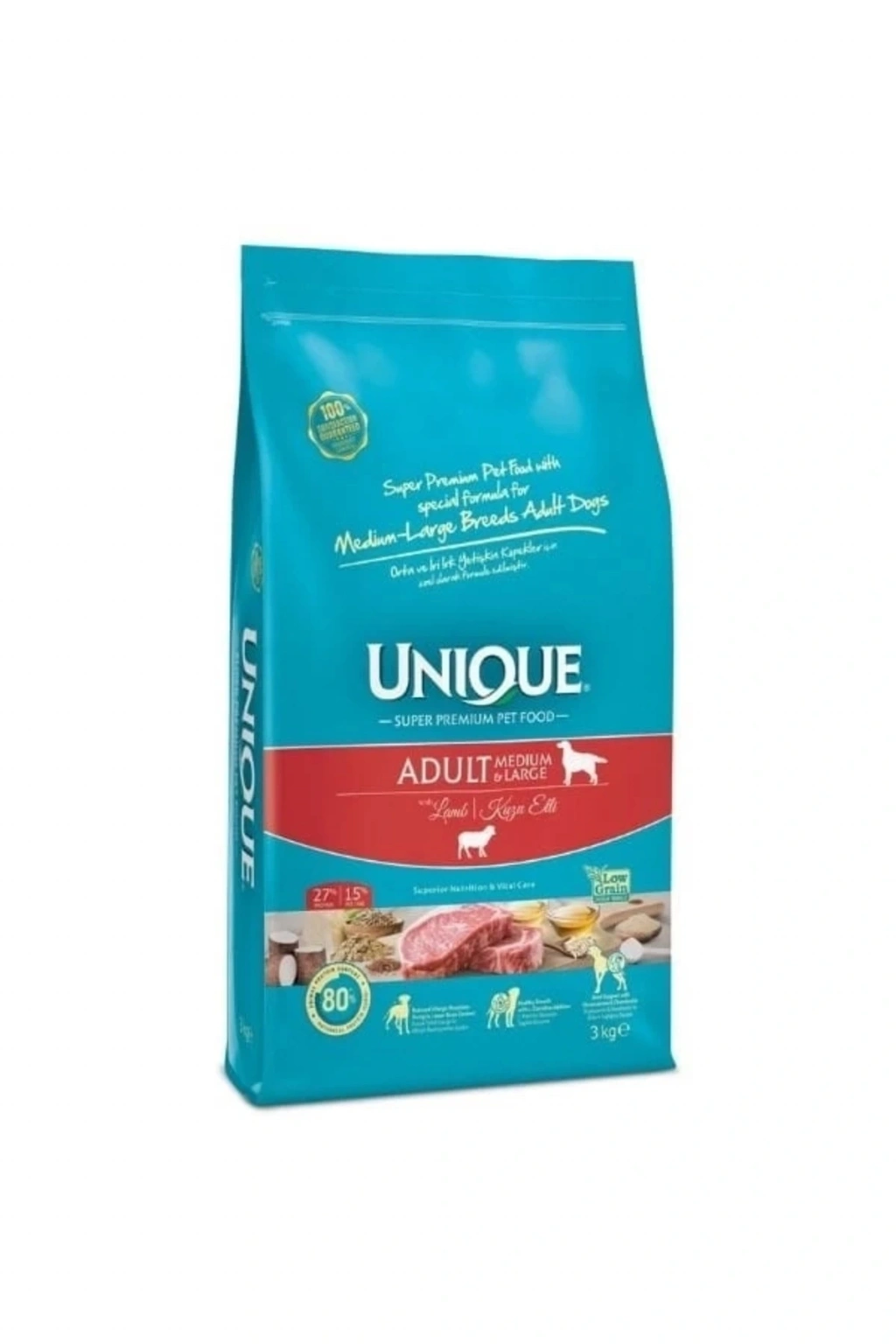 Unique Kuzu Etli Orta Ve Büyük Irk Yetişkin Köpek Maması 3 Kg