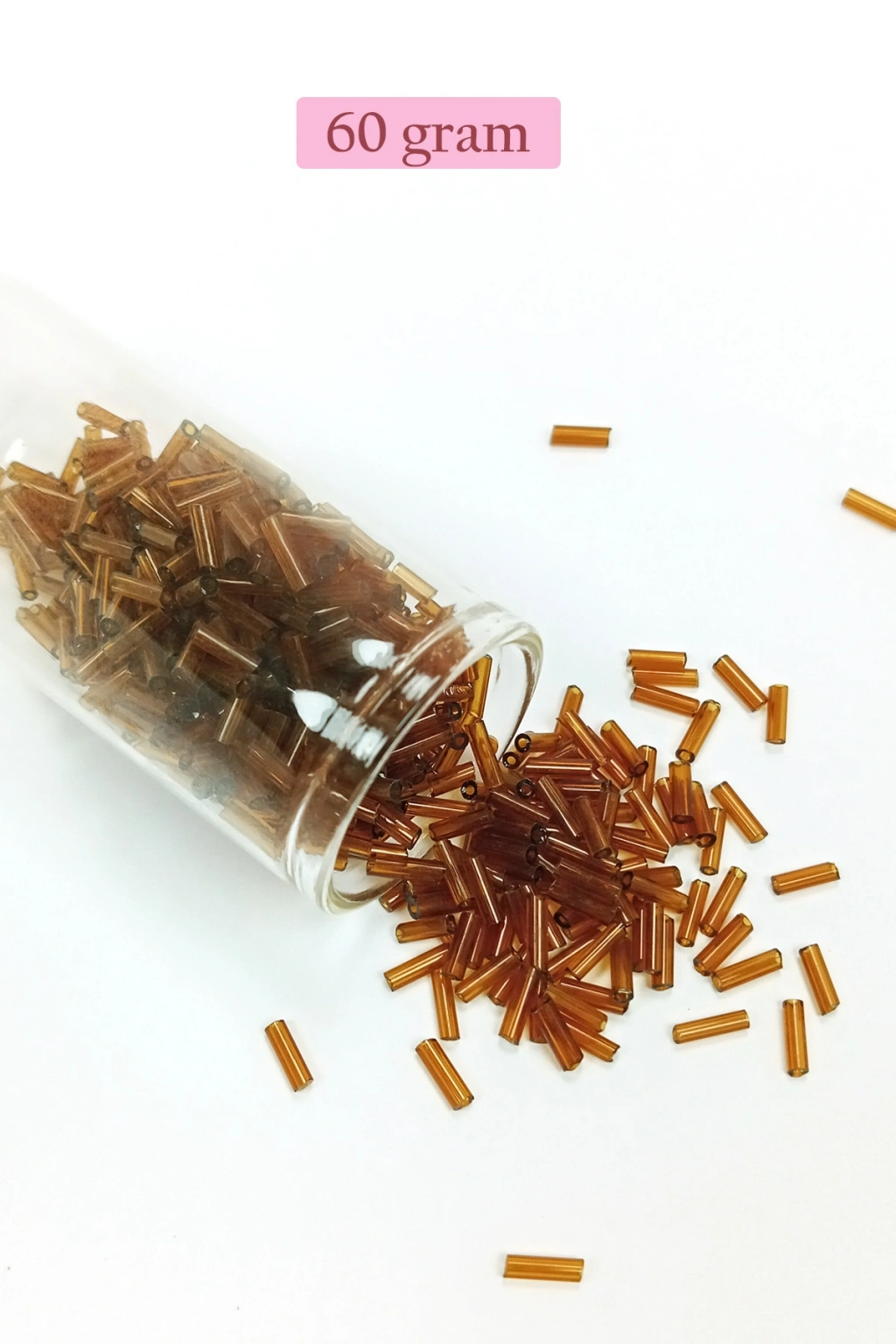 Uzun Boru Kesme Boncuk Çap 2mm Uzunluk 10 mm - 60 Gram - Şeffaf Kahverengi - BNC285