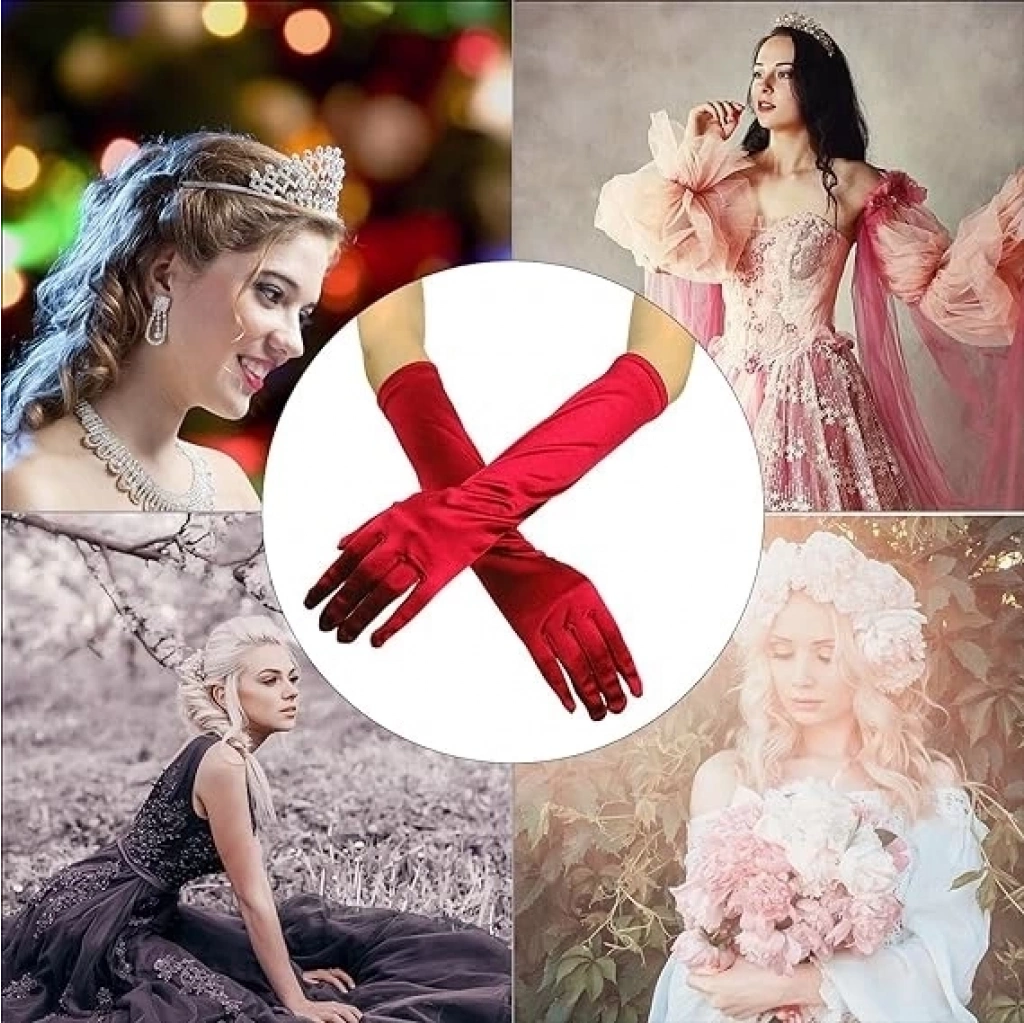 Uzun Boy Ekstra Parlak Saten Eldiven Kırmızı Renk