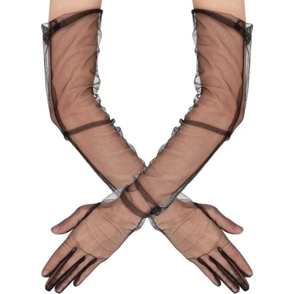 Uzun Boy Likralı Siyah Yetişkin Mega Tül Eldiven