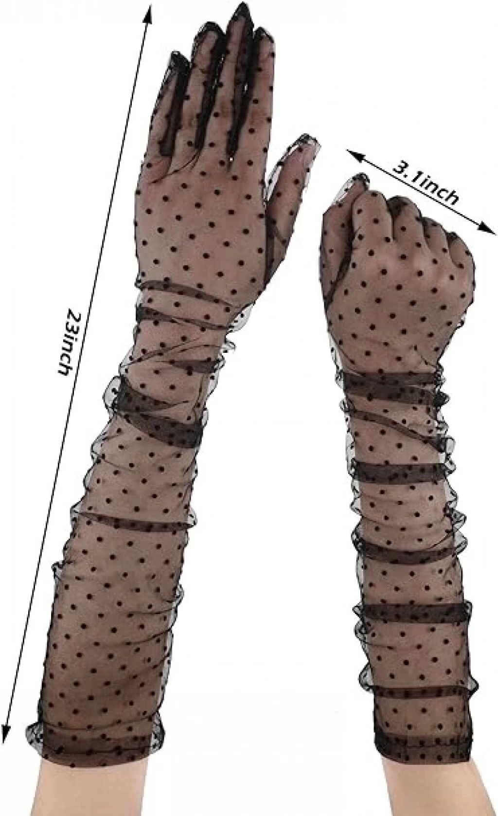 Uzun Boy Siyah Puantiyeli Siyah Renk Yetişkin Tül Eldiven 55 Cm