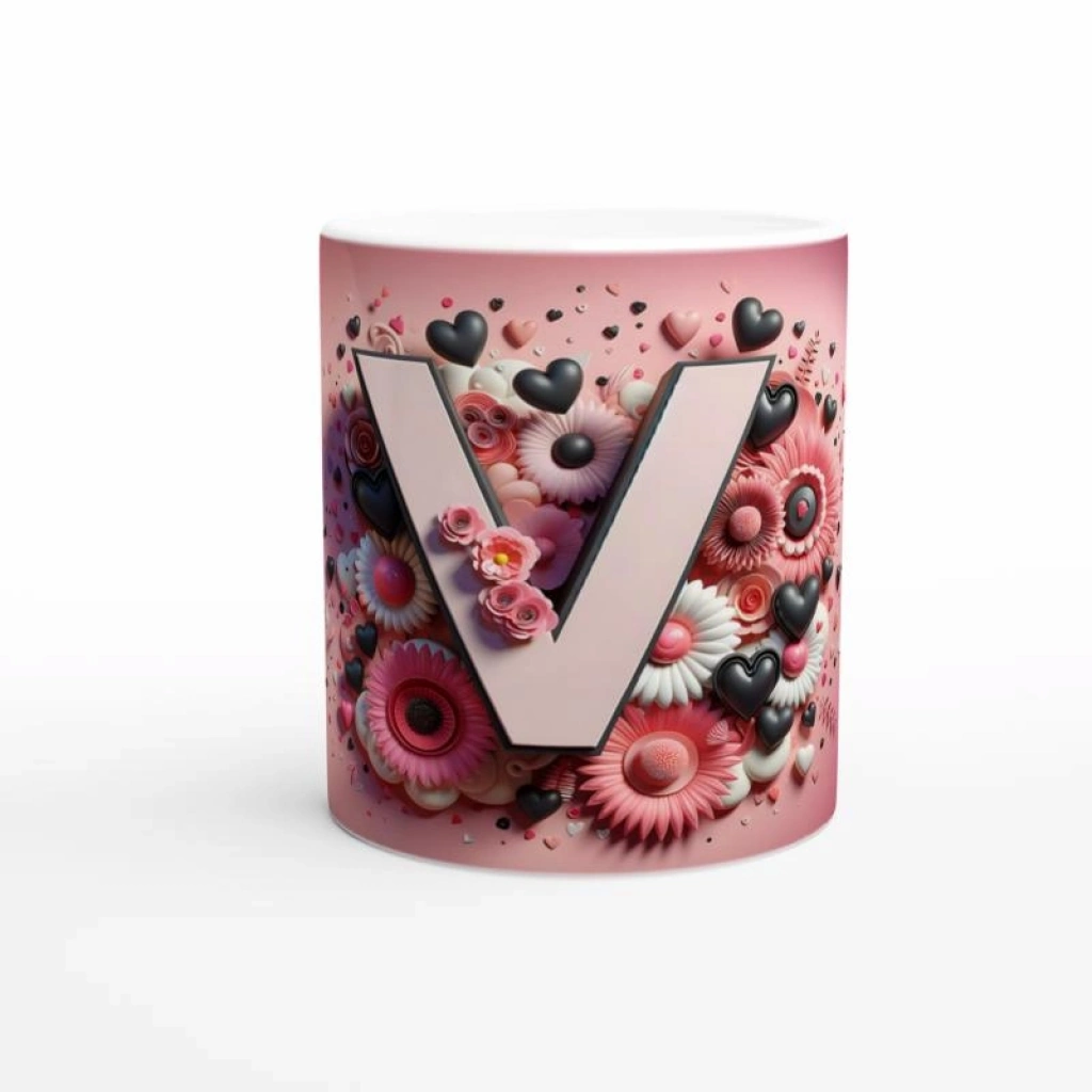 Stil sahibi ve dikkat çekici görünümüyle bu V harfi baskılı kupa bardak, her yudumda keyifli bir deneyim sunar.