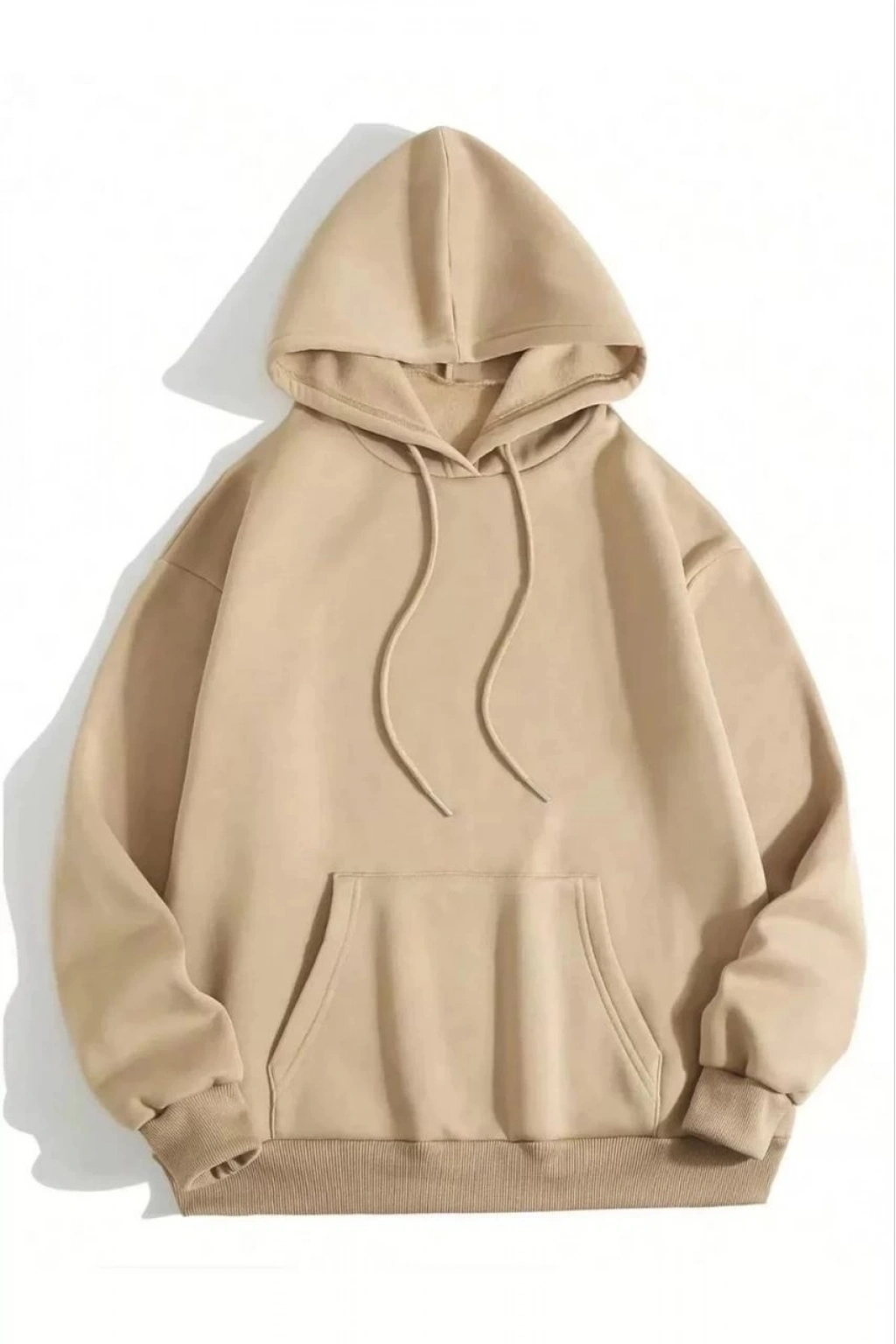 3 İplik Pamuklu Kapşonlu Sweetshirt - Bej -
