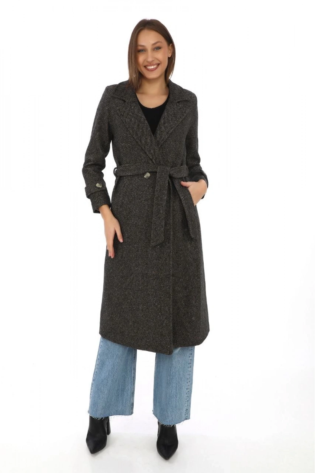 Astarlı Balık Sırtı Kaşmir Kaşe Kaban - Kahverengi -