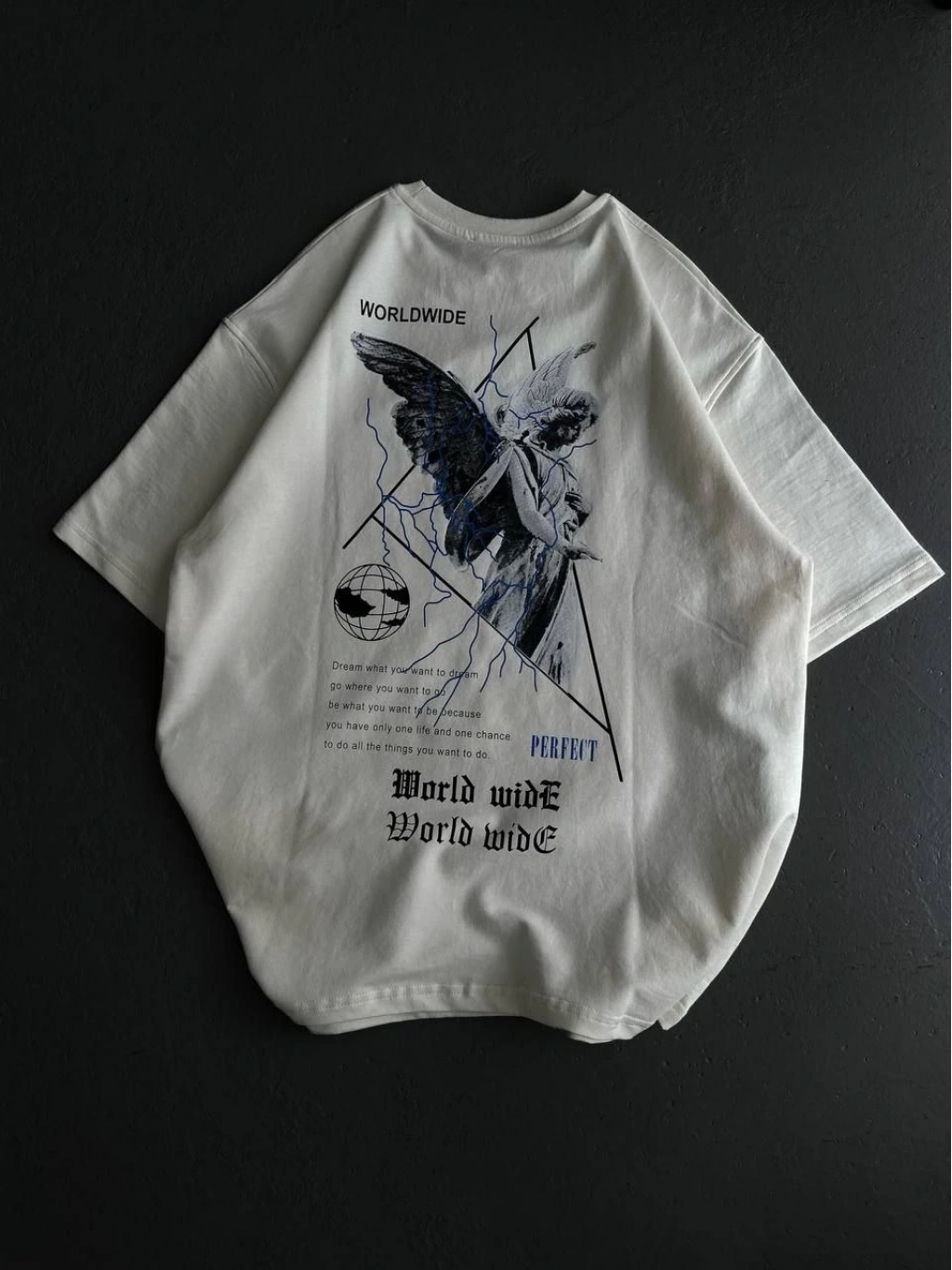 Bisiklet Yaka Baskılı Oversize T-Shirt - Beyaz -
