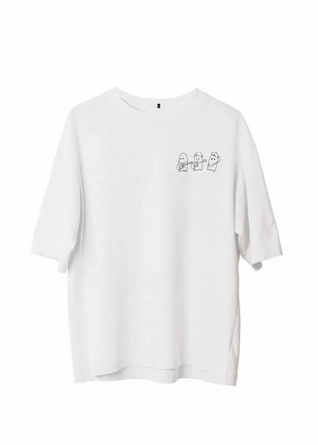 Bisiklet Yaka Baskılı Oversize T-Shirt - Beyaz -