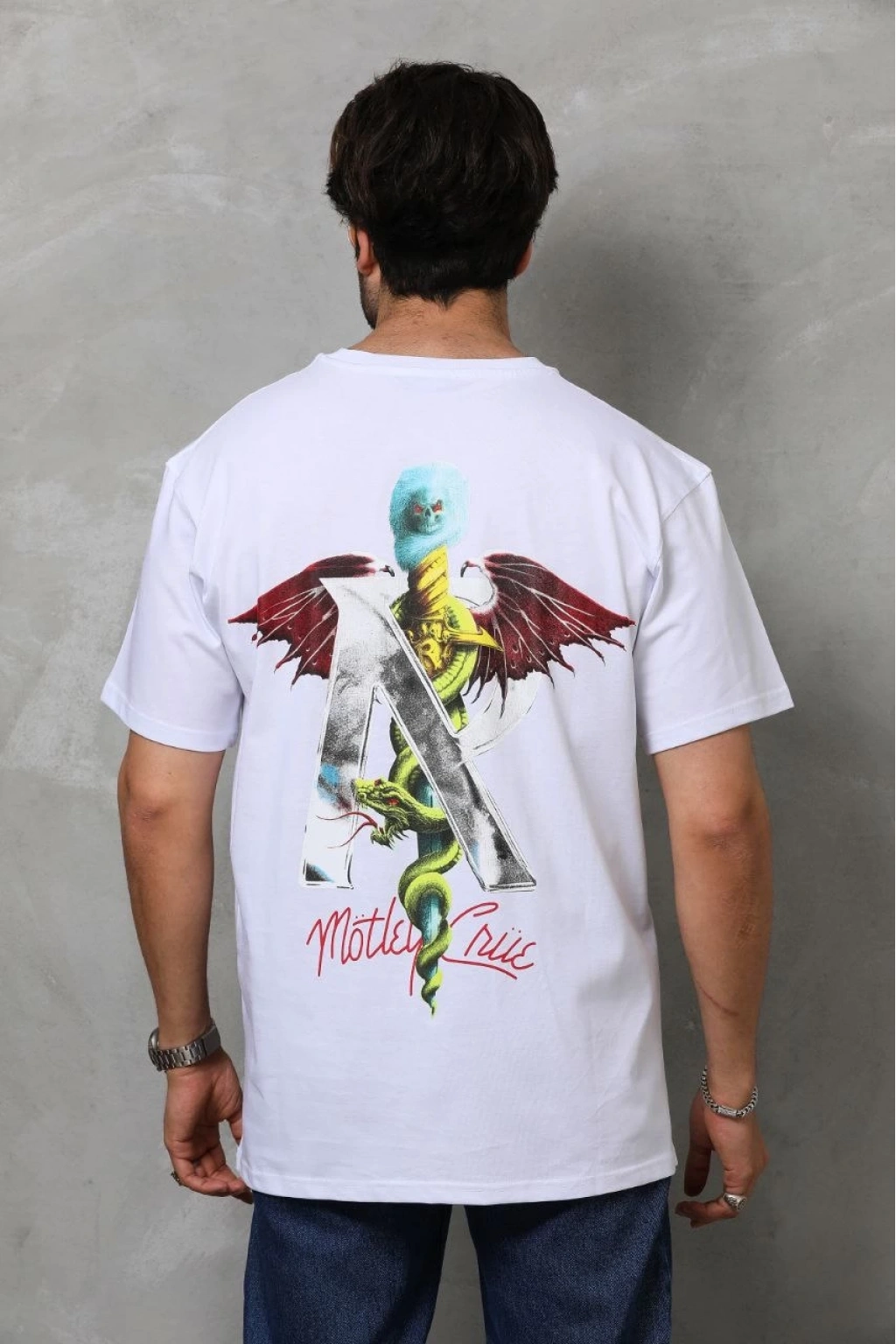 Bisiklet Yaka Baskılı Oversize T-Shirt - Beyaz -