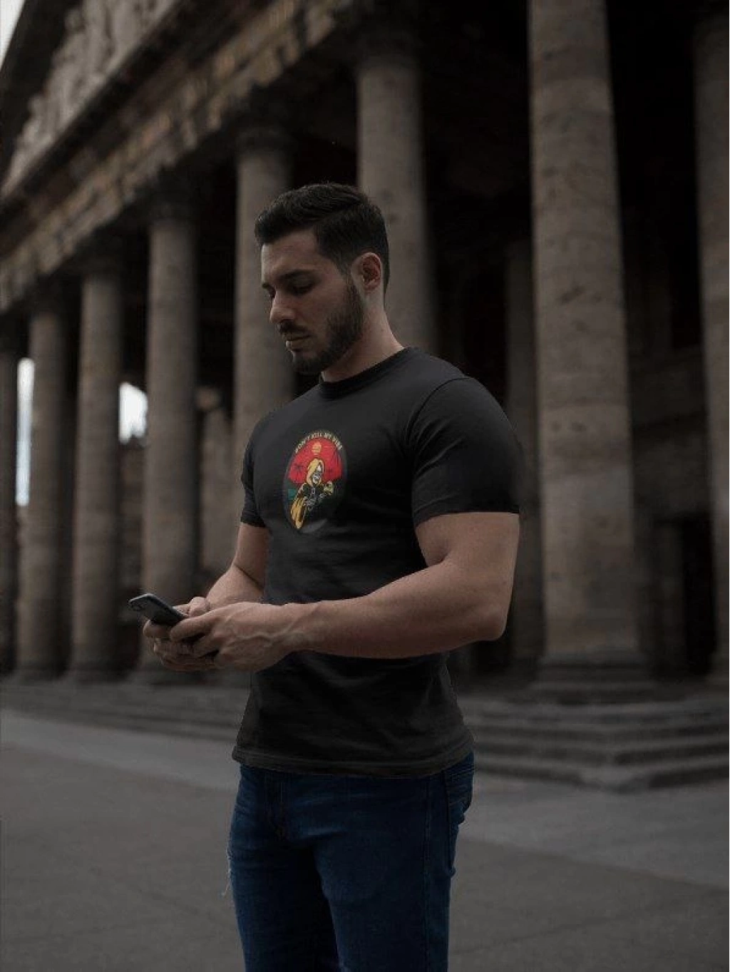 Bisiklet Yaka Baskılı Oversize T-Shirt - Siyah -