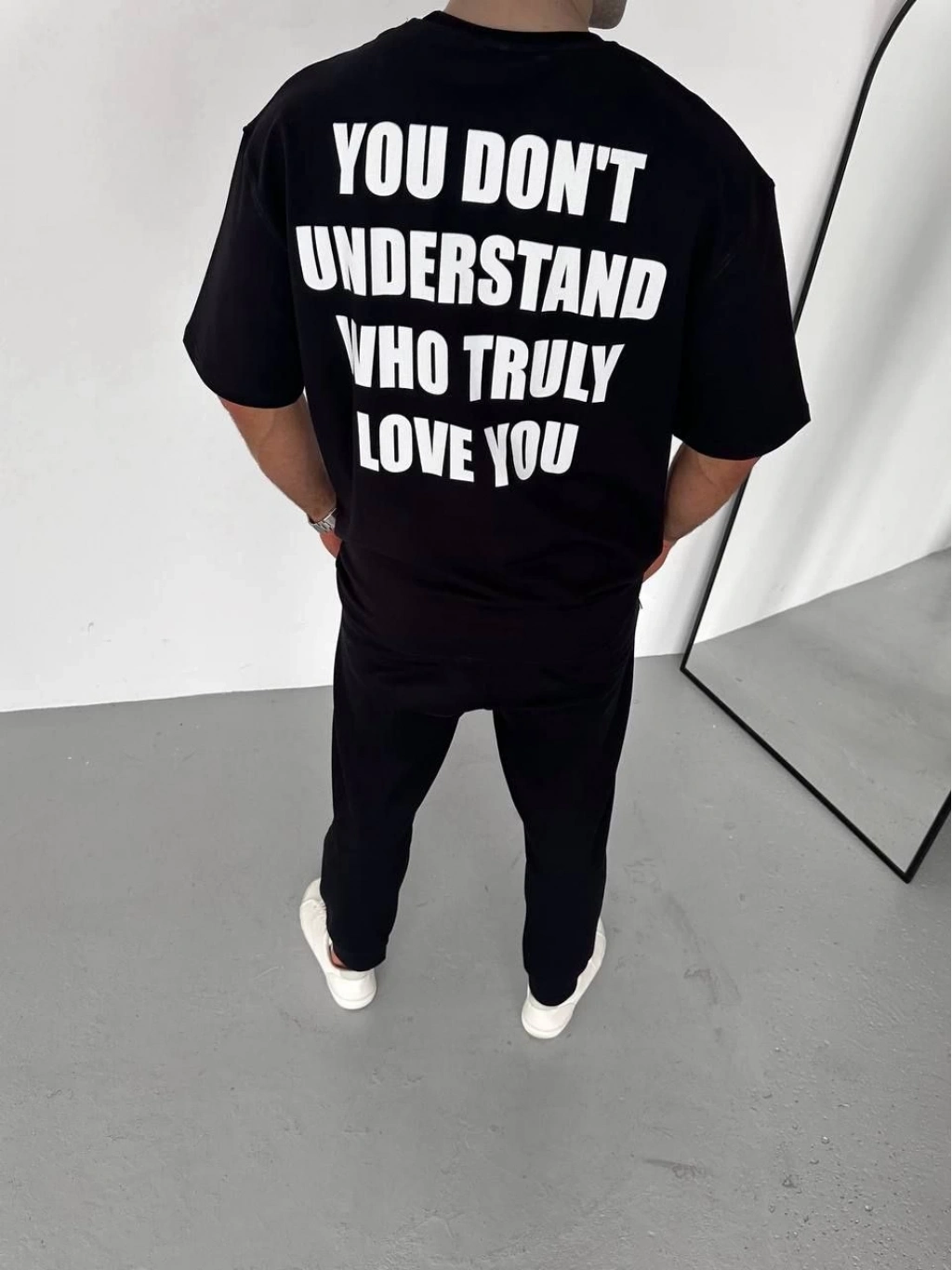 Bisiklet Yaka Baskılı Oversize T-Shirt - Siyah -