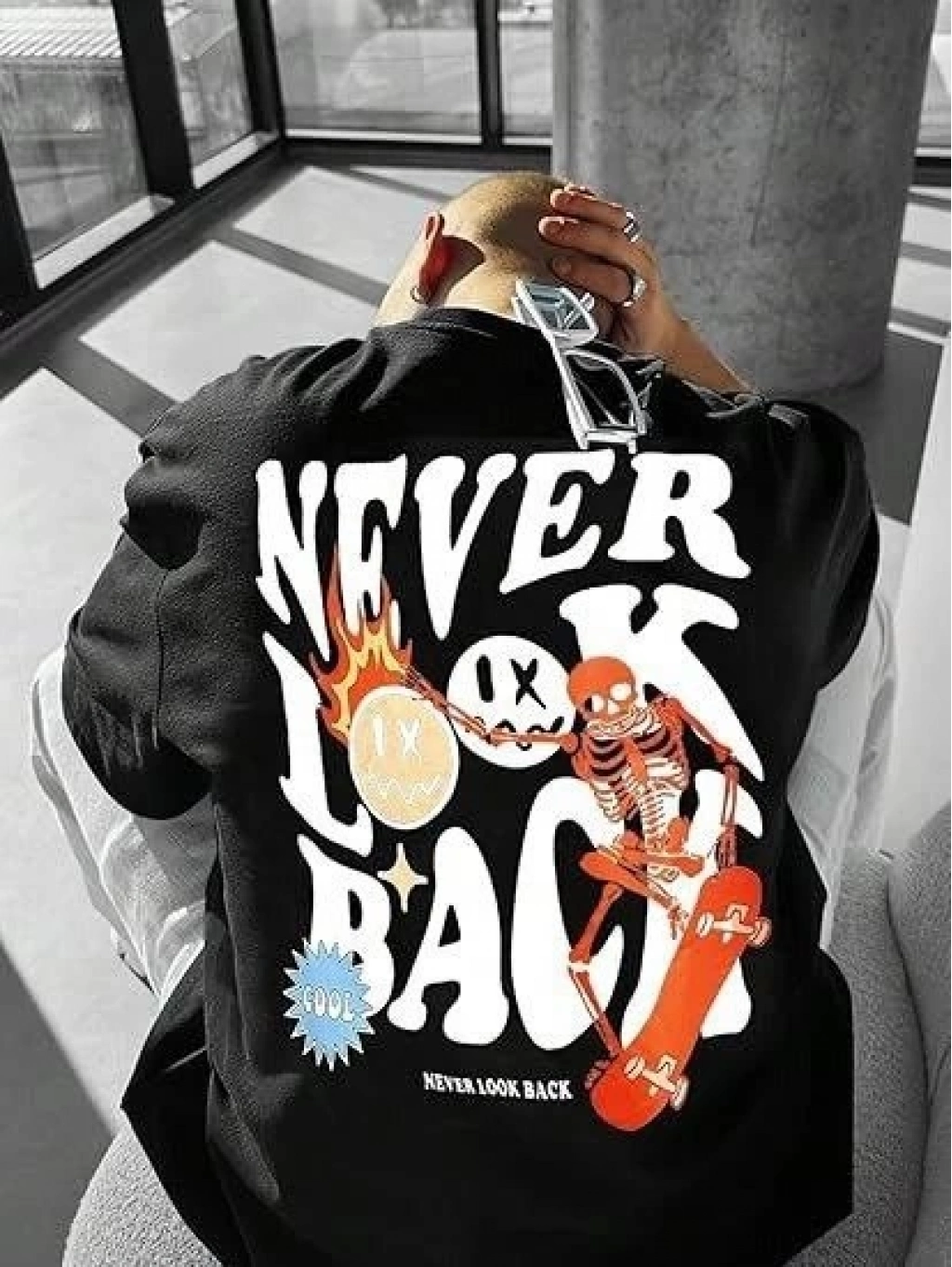 Bisiklet Yaka Kısa Kol Baskılı T-shirt - Siyah -