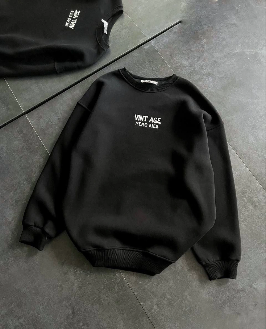 Bisiklet Yaka Üç İplik Baskılı Oversize SweatShirt - Siyah -