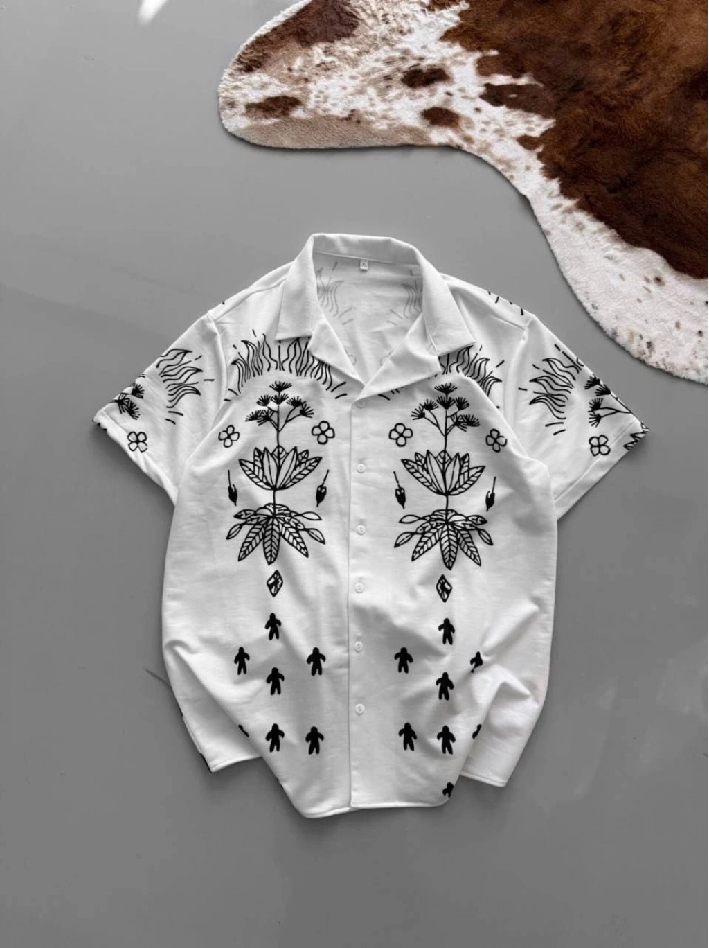 İki İplik Kumaş Baskılı Gömlek - Beyaz -