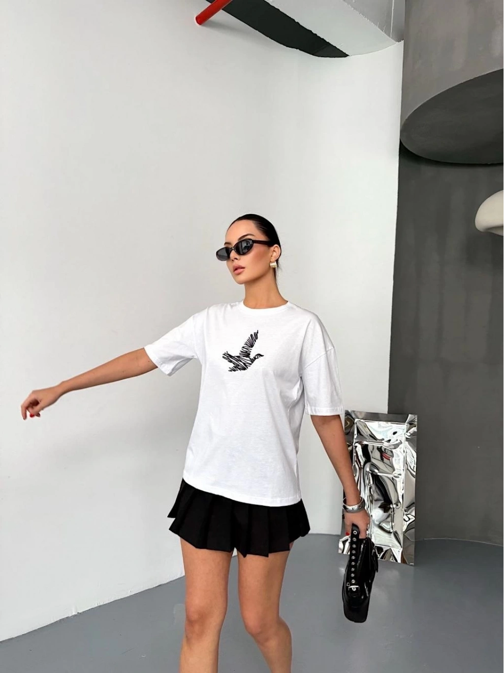Kısa Kol Baskılı T-shirt - Beyaz -