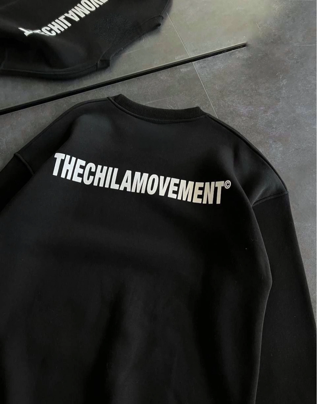 Kışlık Bisiklet Yaka Oversize Baskılı SweatShirt - Siyah -