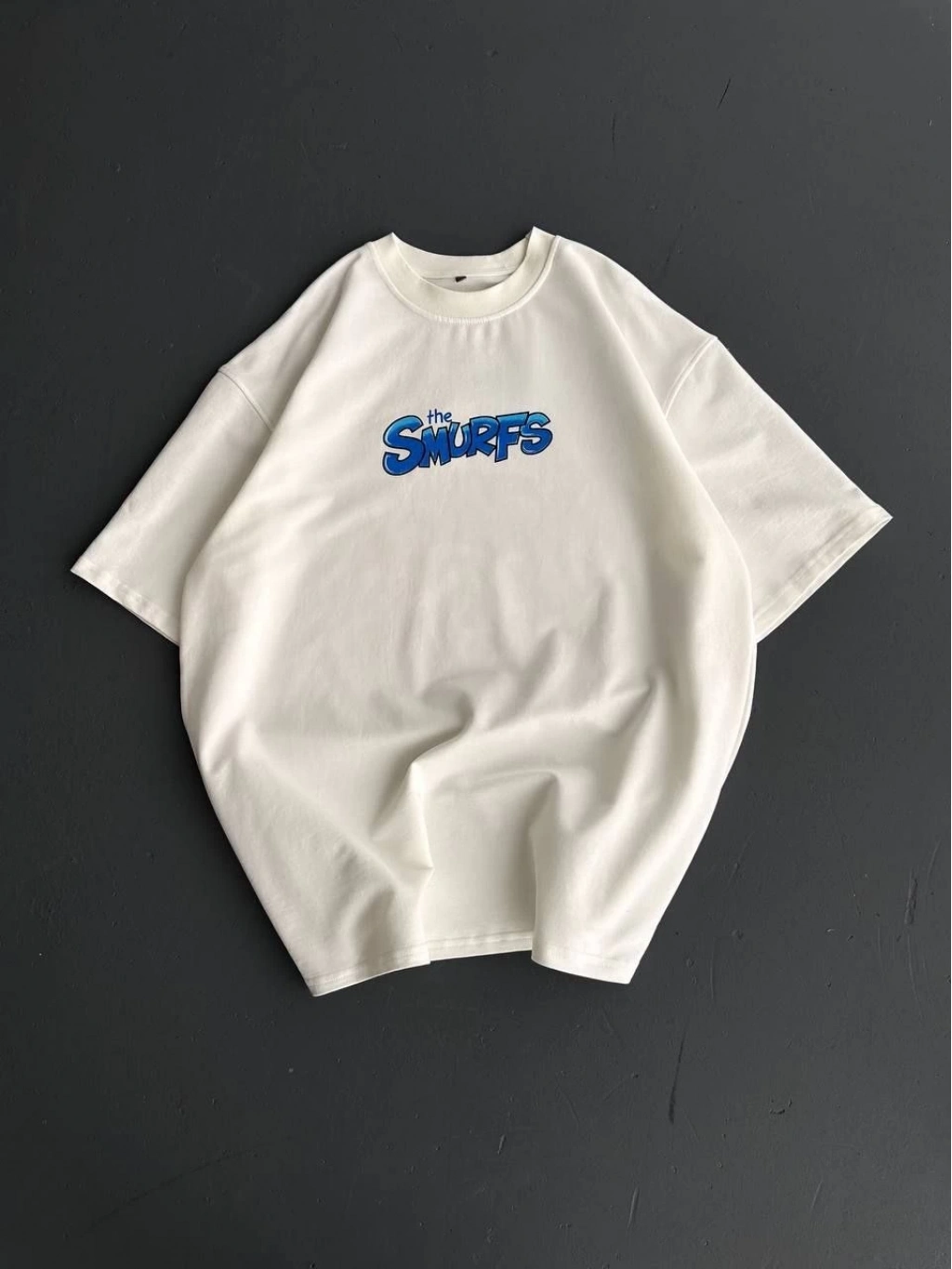 Ön ve Arka Baskılı Oversize Bisiklet Yaka T-shirt- Beyaz -