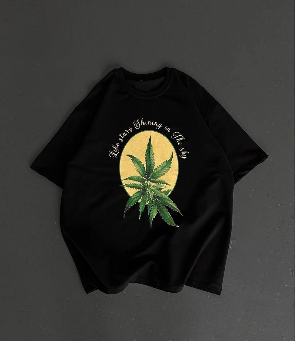 Ön ve Arka Baskılı Oversize Bisiklet Yaka T-shirt- Siyah -