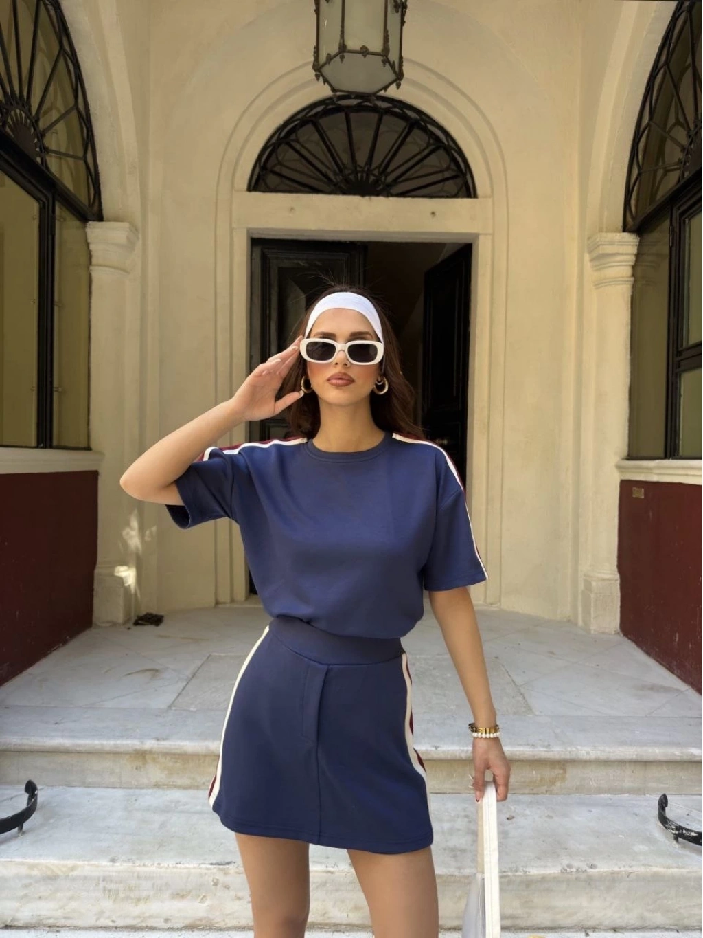 Osy Modal T-shirt Mini Şortlu Etek İkili Takım -Lacivert -