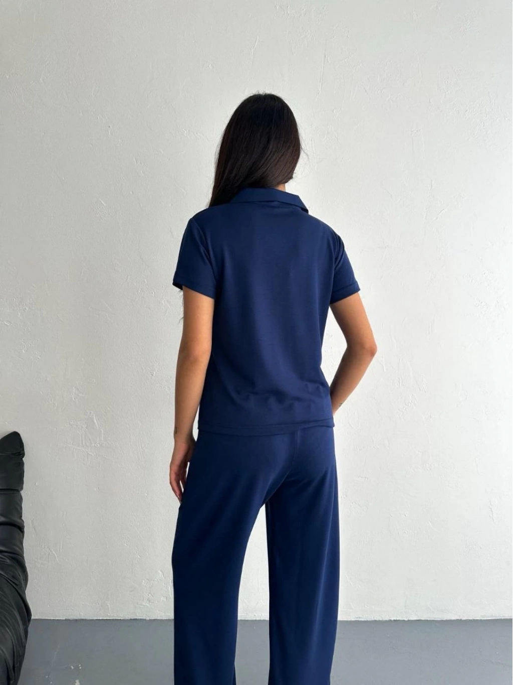 Osy Modal Yumuşak Dokulu Kumaş Kısa Kollu Yakalı T-shirt Pantalon ikili Takım- Lacivert -