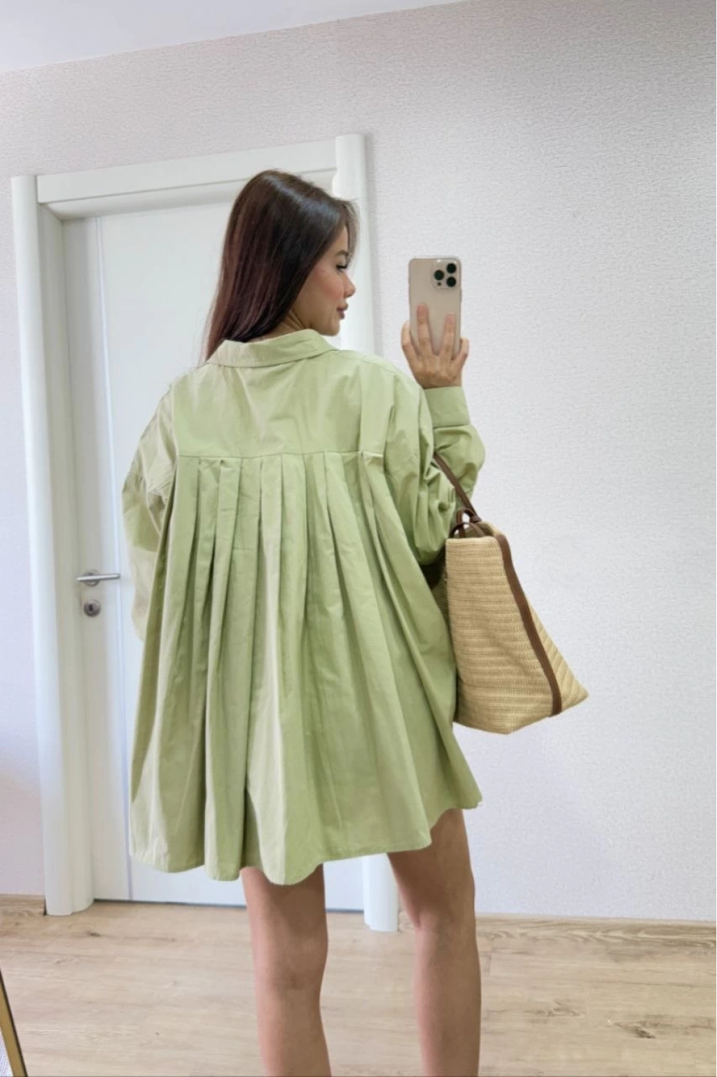 Poplin Yakalı Yandan Yırtmaçlı Arka Pens Detaylı Gömlek - Yeşil -