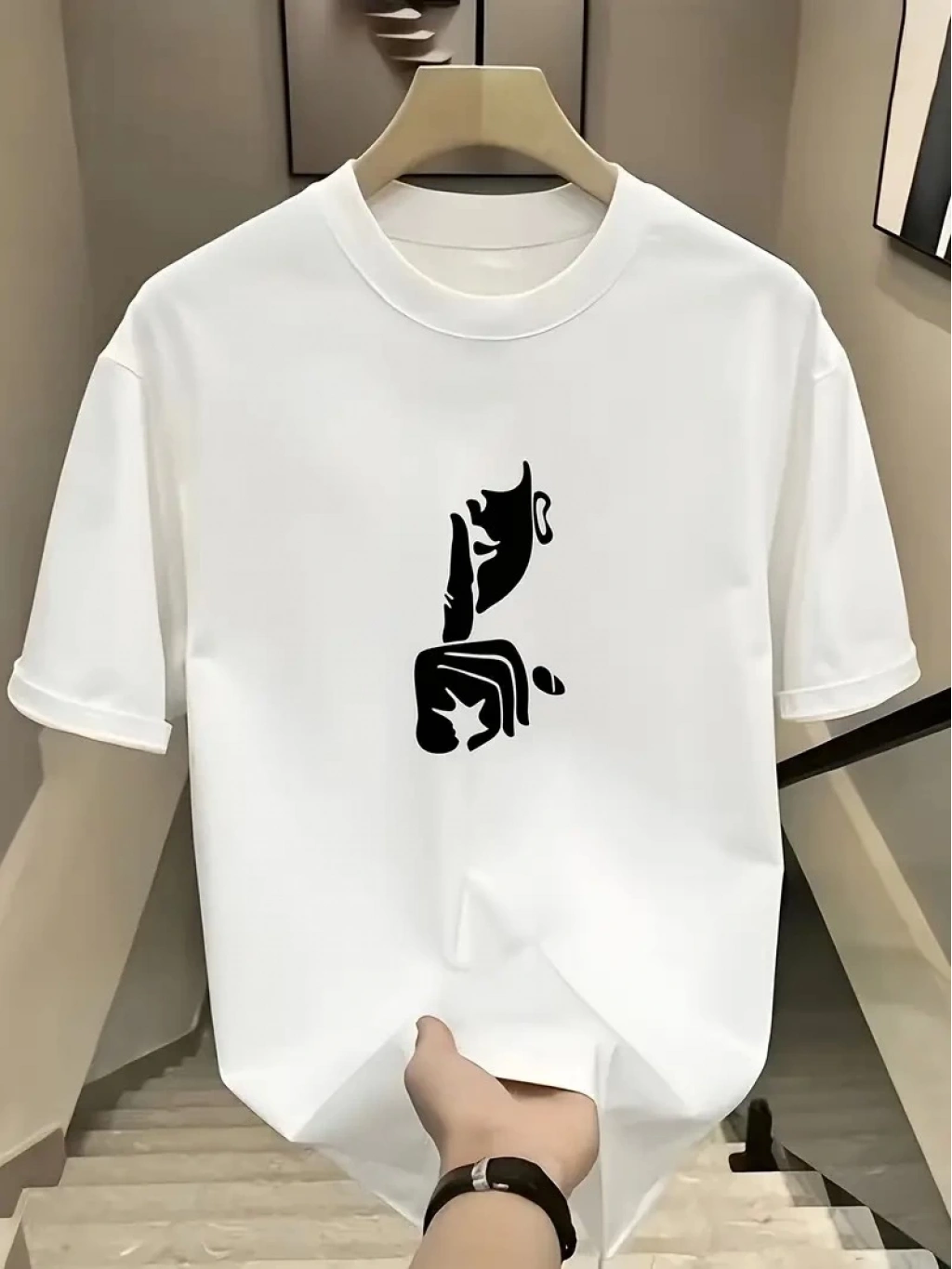 Rahat Bisiklet Yaka Tişört, Yaratıcı Karikatür Baskı Beyaz -